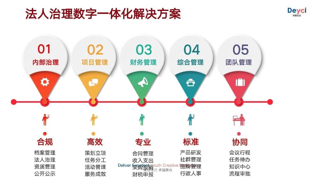 Deyci生态在创立之初,就深刻洞察到数字化治理对于社会组织发展的重要性,因此,我们明确提出了“数字化治理”战略方向,并制定了相应的行动计划。我们围绕“法人治理、业务活动、财务管理、信息公开”等关键维度,结合社会组织等级评估5A登记评估标准,深入研究组织治理数字化的应用场景,从而自主研发出数字化治理平台。这个平台不仅满足了社会组织在法人治理、业务活动、财务管理和信息公开等方面的实际需求,还极大地提升了组织运营的效率和透明度,,推动了组织的精细化管理。并凭借组织数字化管理的创新做法,成立不到三年,我们成功获得了社会组织等级评估5A的荣誉!。