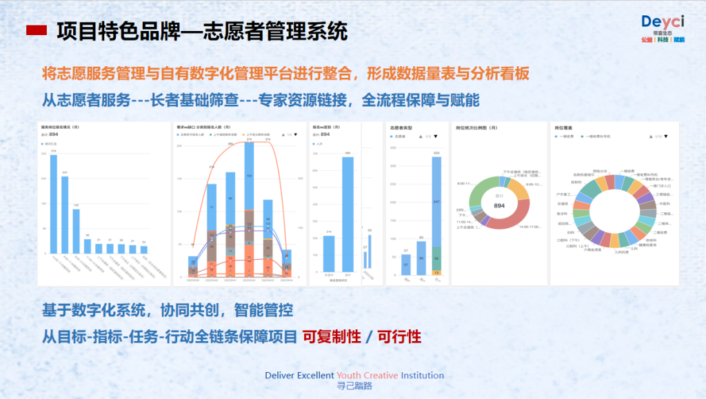 Deyci生态不仅将志愿服务、项目管理、病人关爱空间、资源对接等关键模块进行深度融合,更实现了全流程的保障与赋能,为项目运作提供了专业而全面的服务。这一创新举措极大地激发了社会组织、医疗行业协会等组织管理的潜能,推动它们在医疗健康社会服务领域中发挥最大效能。