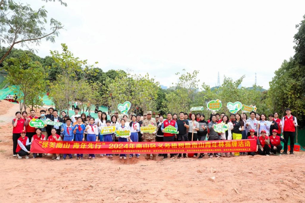 活动由共青团南山区委员会、南山区城管和综合执法局、深圳市规划和自然资源局南山管理局、南山区桃源街道党工委联合主办。活动现场,廖子彬、刘林波、李英峰及程胜名同志为“南山青年林”揭牌,希望通过义务植树的方式,引导广大青年群体弘扬雷锋精神,积极营造“爱绿、植绿、护绿、兴绿”的全民绿化氛围,以绿色志愿植树活动助力南山环境高质量发展。